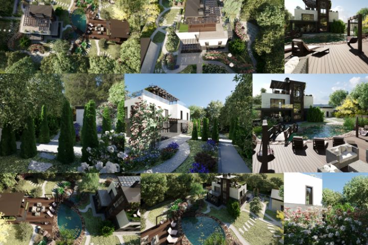 Ландшафт. Загородный дом. Планировка участка. Озеленение. Концепция, визуализации, экстерьер, картинки.