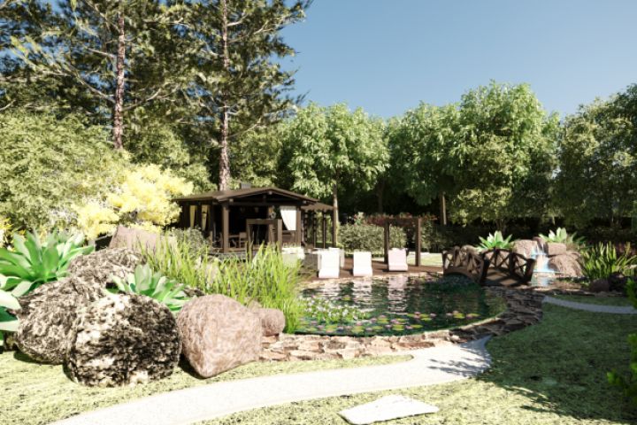 Ландшафт. Озеленение. Загородный дом. Участок. Визуализация