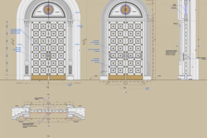 Входные двери. Разработка концепции. Чертежи, узлы. Подбор материалов. Разработка совместно с Производителем. Декоративные решения.