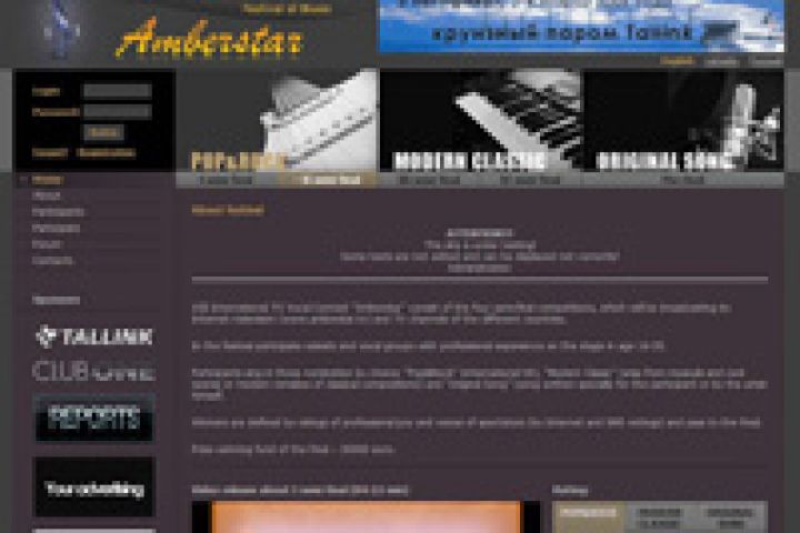 Сайт музыкального телевизионного конкурса "Amberstar", проходящего Риге и Стокгольме. На сайте выкладываются все фото и видео матерьялы коннкурса, а так же осуществляется голосование с помощью СМС и кредитных карт. Молодые исполнители, желающие принять участие в конкурсе, могут регистрировать тут свои заявки.