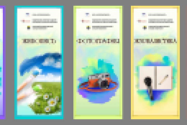 Ролл-ап стенды с номинациями для всероссийского фестиваля творчества кадет. Разработка от идеи до вёрстки и предпечатной подготовки.