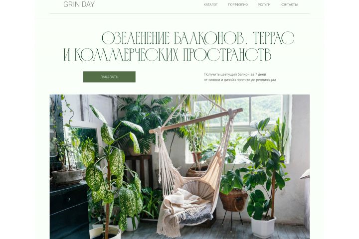 Разработка сайта для компании по озеленению террас и коммерческих пространств. Необходимо было создать светлый, свежий, минималистичный дизайн. Сделать акцент на фото работ. Рассказать о преимуществах компании.