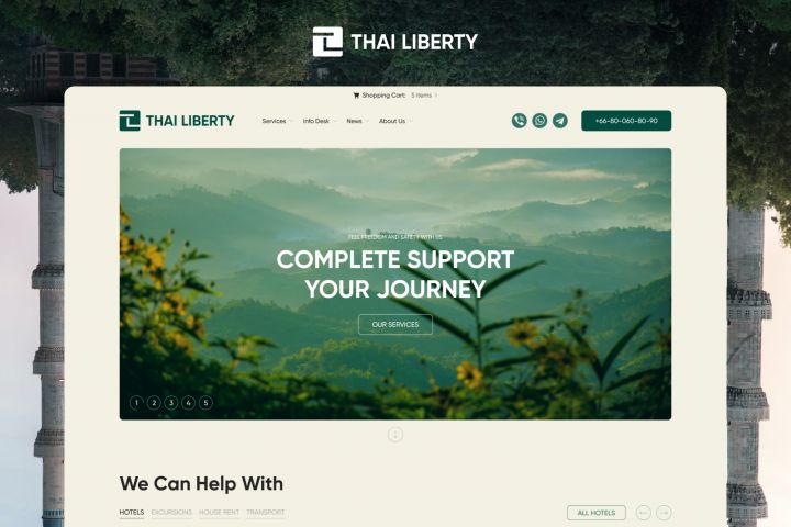 Сайт-каталог для услуг букинга отелей и транспорта по Тайланду