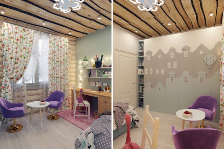 Дизайн-проект срубового дома на берегу реки Вуокса, Ленинградская область / Детская комната