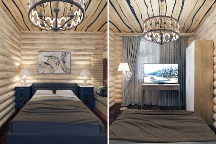 Дизайн-проект срубового дома на берегу реки Вуокса, Ленинградская область / Спальная комната