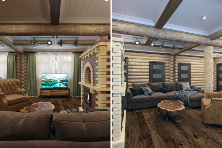 Дизайн-проект срубового дома на берегу реки Вуокса, Ленинградская область / Гостиная