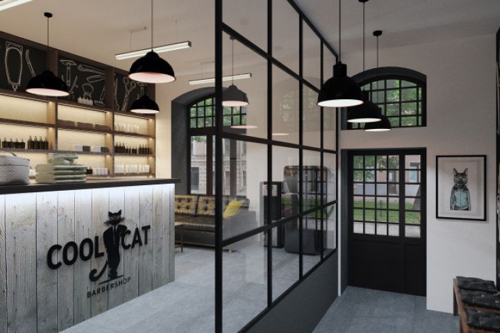 Дизайн интерьера барбершопа Coolcat в центре Васильевского острова.