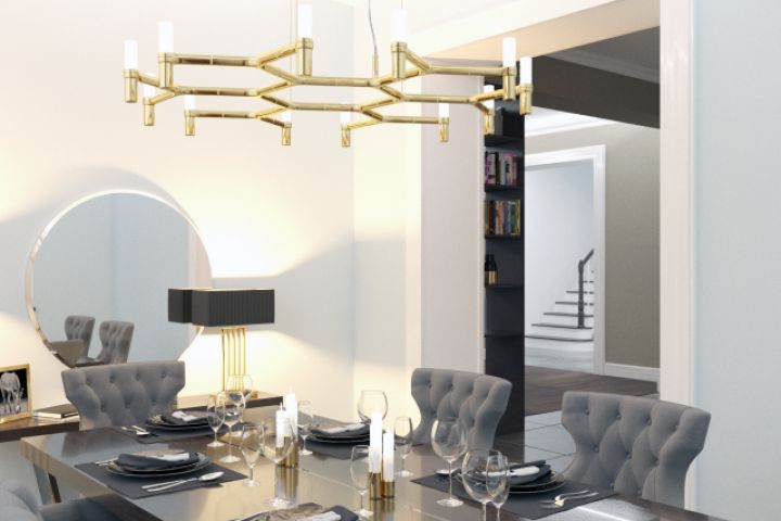 Основное внимание в оформлении столовой отдается созданию обеденной группы, остальные элементы интерьера становятся лишь фоном или сопутствующими предметами меблировки и декора. Представить себе неоклассическую столовую без вместительного стола из натурального массива дерева с красивыми резными ножками сложно. А вот стулья вокруг обеденного стола могут быть разными, даже выполненными в современном стиле, но с мягким оформлением сидений и чаще всего спинок. Дополняет картину респектабельного помещения для трапез роскошная люстра, расположенная непосредственно над обеденной группой.