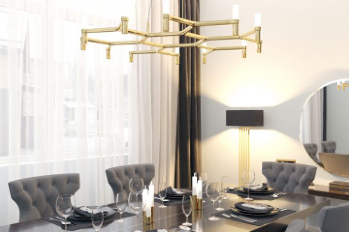Основное внимание в оформлении столовой отдается созданию обеденной группы, остальные элементы интерьера становятся лишь фоном или сопутствующими предметами меблировки и декора. Представить себе неоклассическую столовую без вместительного стола из натурального массива дерева с красивыми резными ножками сложно. А вот стулья вокруг обеденного стола могут быть разными, даже выполненными в современном стиле, но с мягким оформлением сидений и чаще всего спинок. Дополняет картину респектабельного помещения для трапез роскошная люстра, расположенная непосредственно над обеденной группой.
