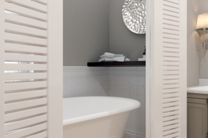 Стандартный совмещенный санузел «хрущевки» или любой другой малогабаритной квартиры – не для неоклассицизма. Ванная комната, в которой удастся отразить концепцию современной интерпретации исторического классицизма должна быть просторной и светлой. Ведь нам необходимо будет иметь возможность не только обеспечить помещение для водных процедур всем необходимым набором сантехники и систем хранения, но и показать красоту натуральных отделочных материалов, вычурность аксессуаров для ванны и раковин и даже роскошь осветительных приборов.
