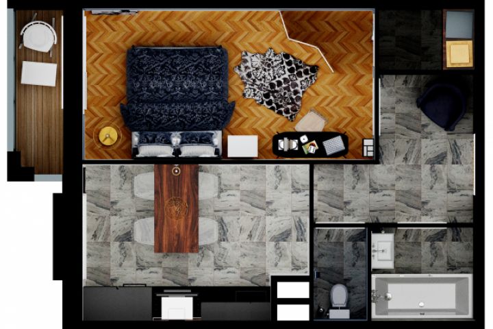 Дизайн интерьера однокомнатной квартиры. Апарт-комплекс RoyalPar