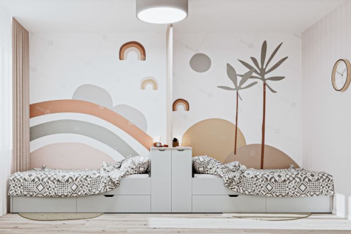 Дизайн и 3D визуализация интерьера детской комнаты разнополых детей .
