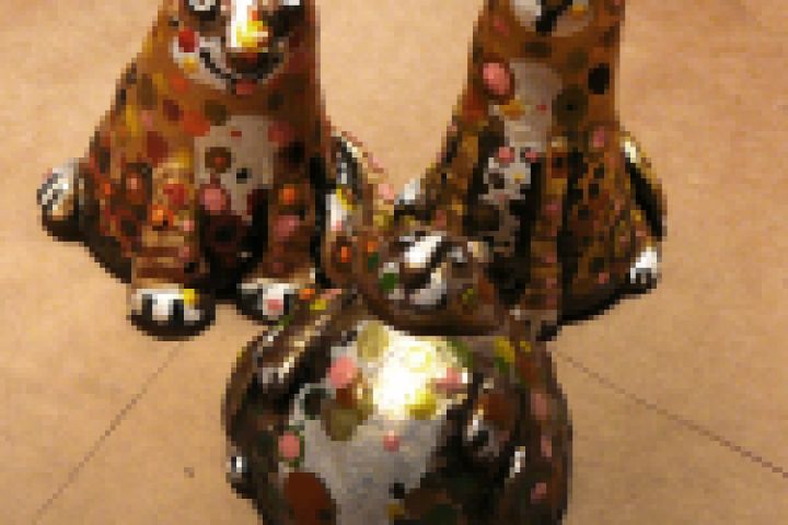 Коты из солёного теста, раскрашенные аэрозольной золотой краской и акриловой краской для ткани. Вот такие коты))