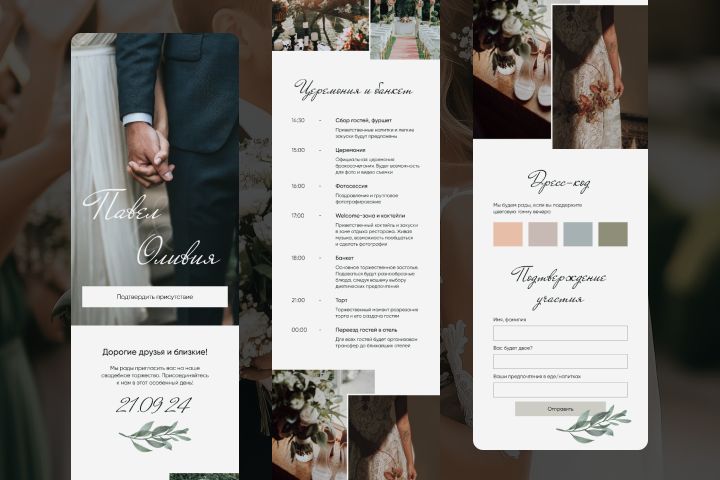 Разработала стильное и удобное мобильное приглашение для свадьбы.