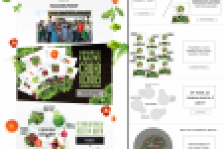 Из фишек: добавили "летающие салаты и овощи" на главной и еще на некоторых внутренних страницах сайта, качественно проработали карточку продукта с описанием полезных свойств в виде красочной инфографики.
