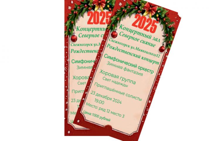 Дизайн билетов на новогодний концерт. Генерация ИИ, доработка Photoshop, Corel Draw