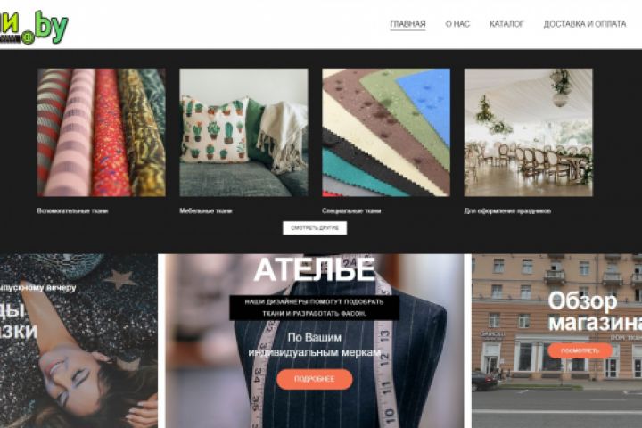 Разработка текстов, обработка изображений, и др. Адаптивный сайт для интернет-магазина по продаже тканей и фурнитуры, под ключ.