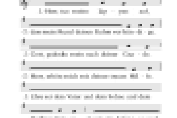 Верстка книжного издания "Gesangbuch" (с нем. "Сборник церковных песен"), содержащего нотные станы и текстовые блоки куплетов.