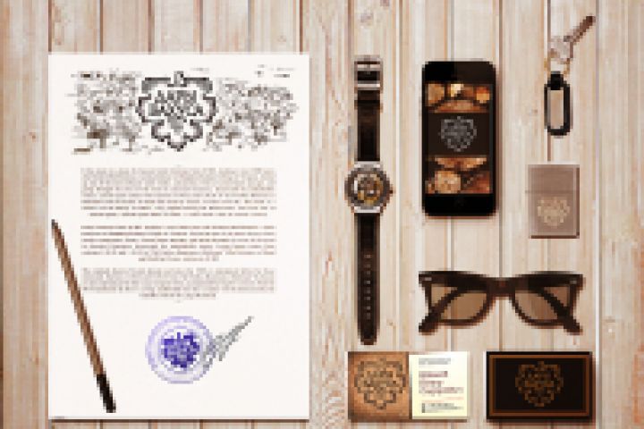 Логотип алкомаркета оформлен в виде клейма - в центре название компании, обрамленное гравёрным изображением виноградного листа - одного из символов бога виноделия Бахуса. Фирменный шрифт выполнен в виде скругленных элементов моделирующих образ плетущейся лозы, а выносной элемент буквы У акцентирует этот момент своим завитым основанием одновременно напоминающим "усики" винограда и штопор.