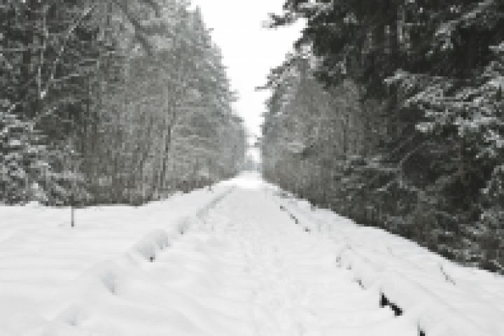 Железнодорожное полотно расположенное в лесу, в одном из подмосковных городков.