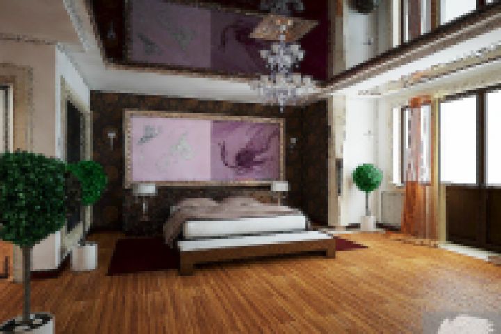 "контрастная спалья" с комбинированным потолком и темными обоями