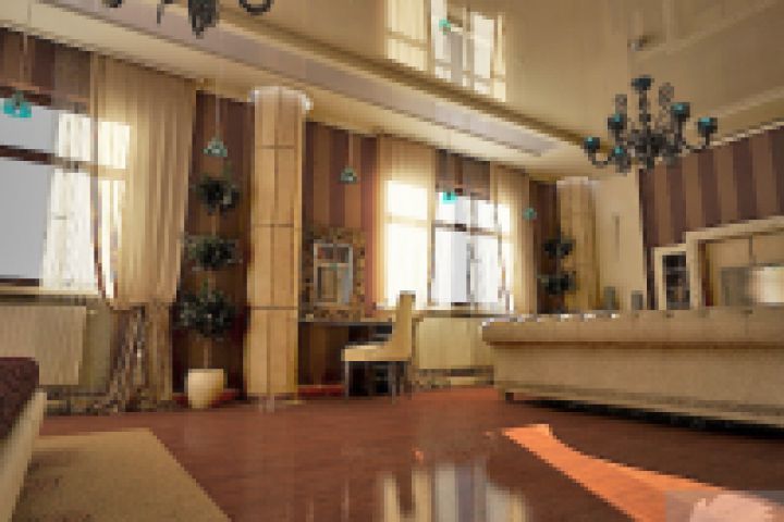 спальная комната с колонами и подсветкой,предусмотрен женский гардеробный столик