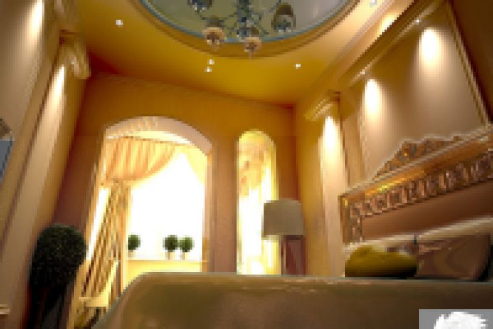 спальня в спокойных тонах,потолок комбинация натяжного и гипсокартона