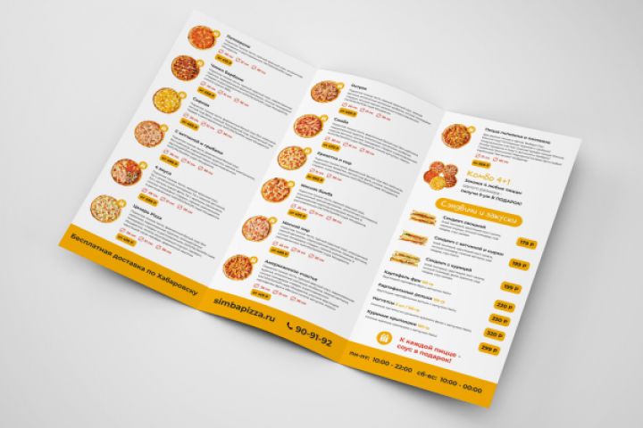 меню пицца буклет три сложения