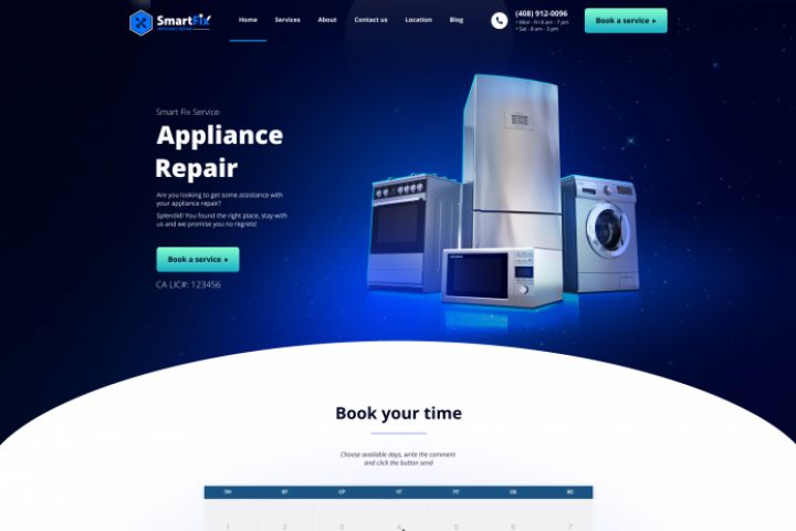 Проект достаточно сложный и нетипичный, много слайдеров и скриптов JS, но все мы знаем преодолевая сложности мы растем. Сайт для американской фирмы который занимает ремонтом бытовой техники.