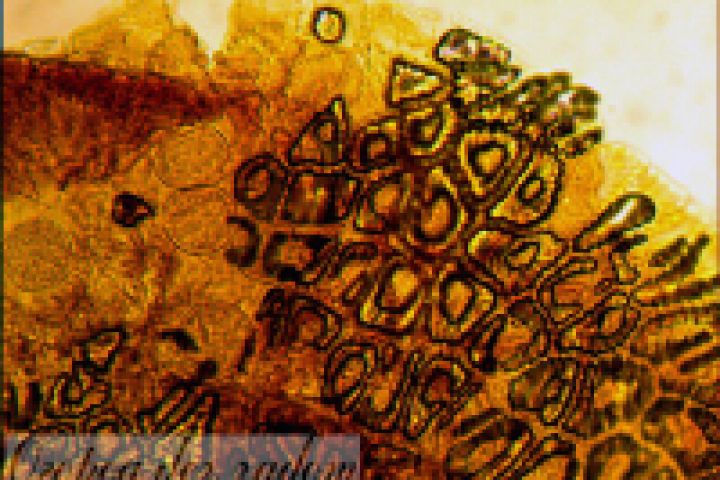 Это не хрень, как вы подумали. Это пыльник тычинки подорожника с пыльцой под микроскопом.