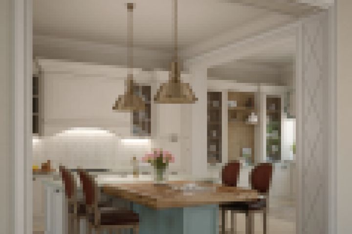 Визуализация кухни в загородном коттедже