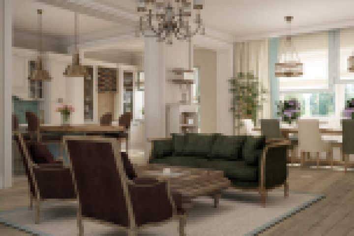 Визуализация гостиной в загородном коттедже