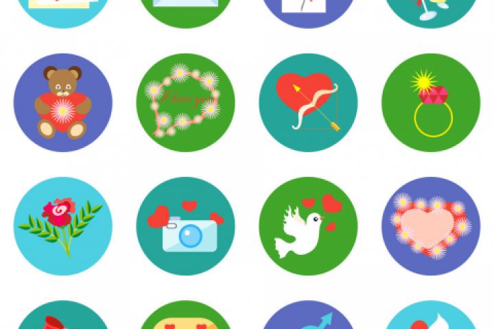 Набор из 16 иконок "День Святого Валентина". Векторное изображение.