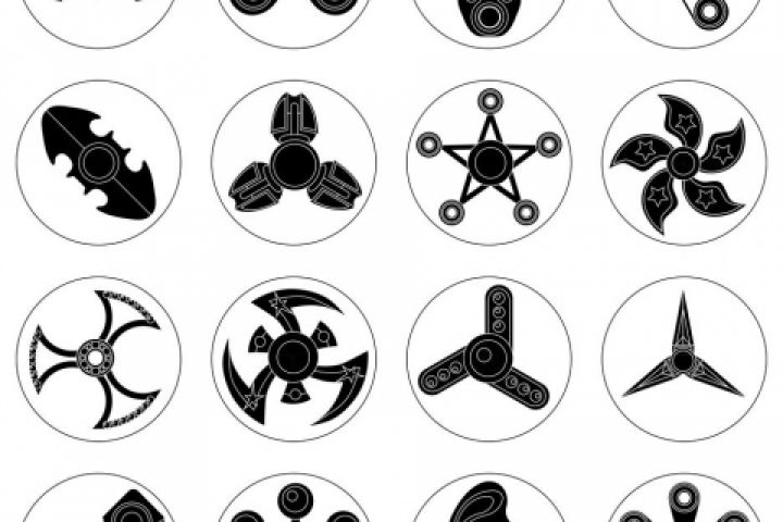 Набор из 16 иконок "спиннеры". Иконки выполнены в флэт стиле и в черно-белом варианте (simple).