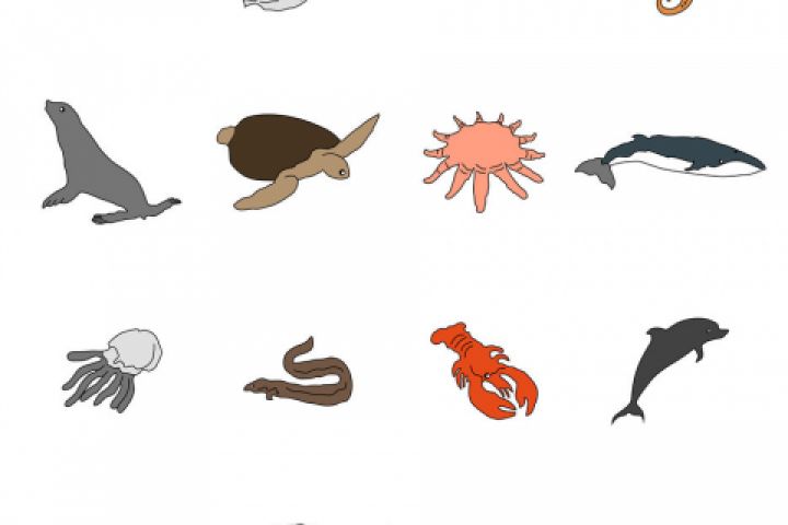 Иконки "Морские жители", контурные с цветной заливкой
