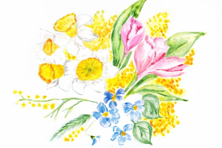 Разработка макета открытки к 8 марта. Изначально стояла задача, разработать проект открытки, ориентируясь по стилю на советские поздравительные открытки, их композицию и цветовую гамму. Нужны были нежные, светлые изображения.