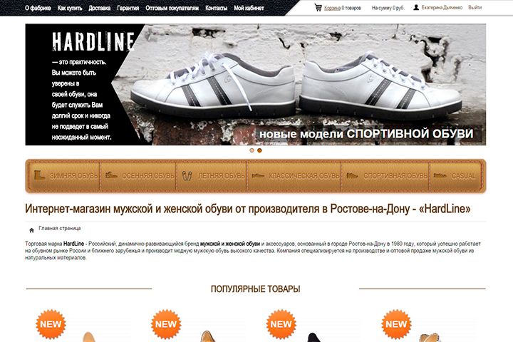 Прототипирование и разработка дизайна для интернет-магазина обуви: hardline.pro. HardLine - Ведущий из производителей обуви на рынке России.