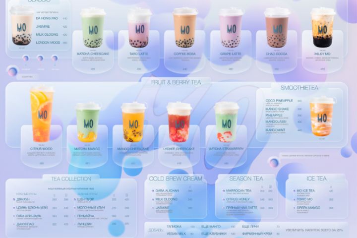 Дизайн меню для рестоклуба, в стиле стекломорфизм