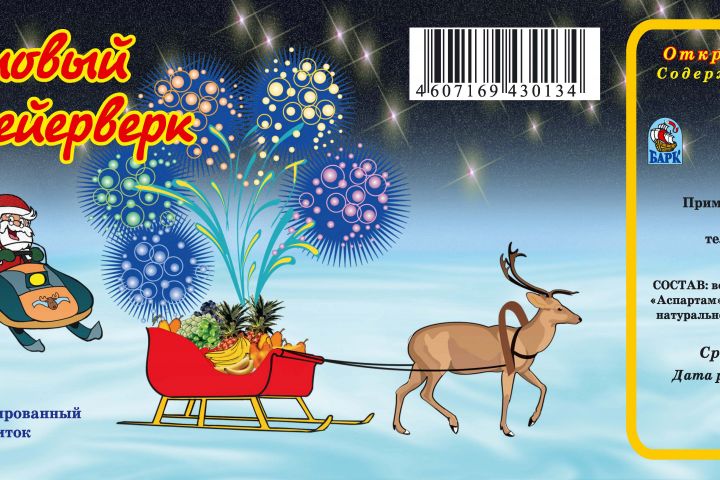 этикетка на среднегазированный напиток «Фруктовый фейерверк»