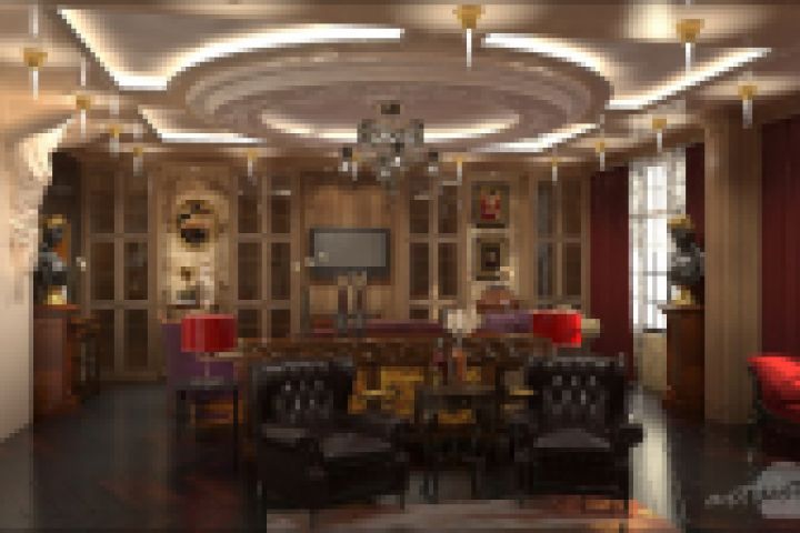 Дизайн и визуализация интерьера таунхауса. Гостиная комната