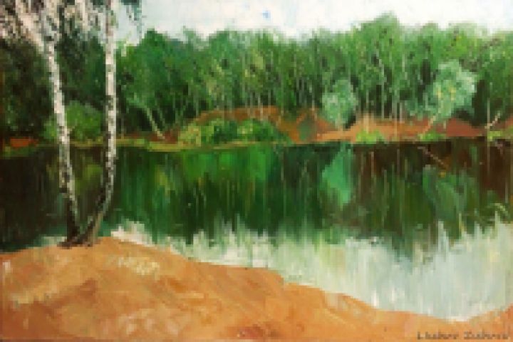 Живопись, холст, масло, вода, лес, река, деревья, картина, ручная работа, пейзаж, небо, зелень