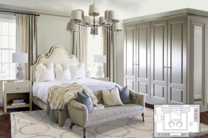 Эскиз спальни выполнен в технике коллаж Это на 3Д Быстрый и наглядный способ отобразить образ будущего интерьера