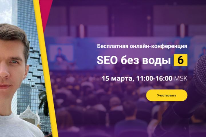 Выступление на конференции "SEO без воды 6" в роли спикера с презентацией на тему "Продвижение сайтов услуг". Организатор конференции Андрей Буйлов.