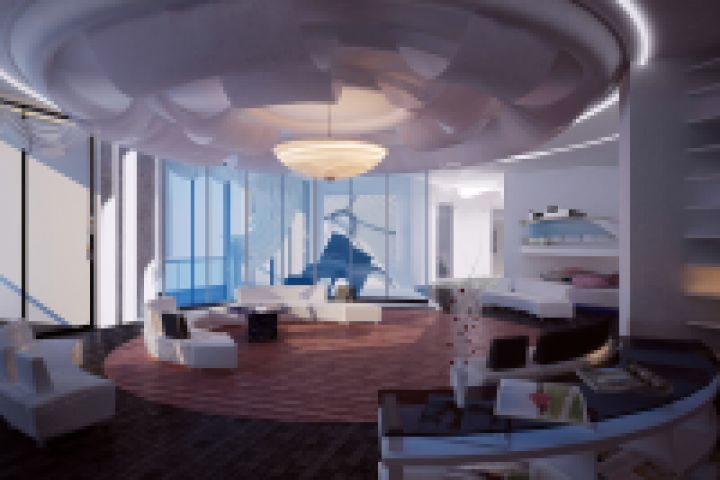 Визуализация гостиной в апартаментах для матери и дочери.Красногорск