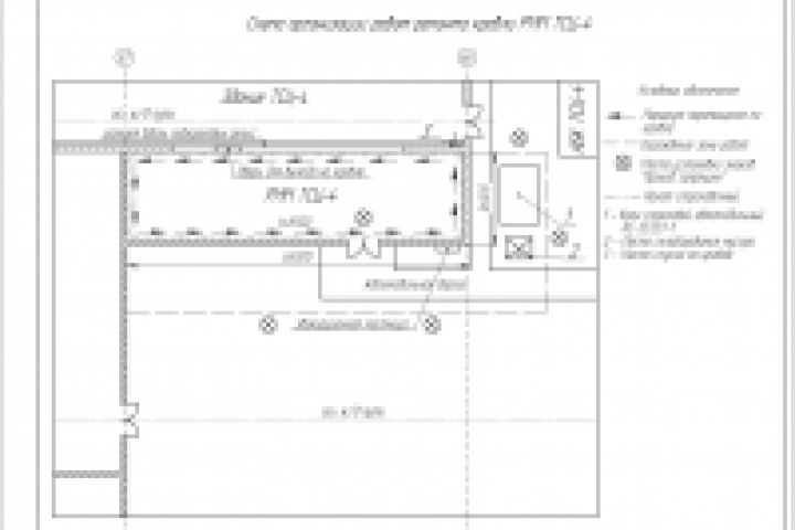 Схема, входящая в состав проекта организации работ (ПОР) по ремонту кровли на Харцызском трубном заводе после артобстрела в 2014 году. Была векторизована с бумажного чертежа и редактирована в Компас-3D V16, а затем отредактирована в AutoCAD 2014