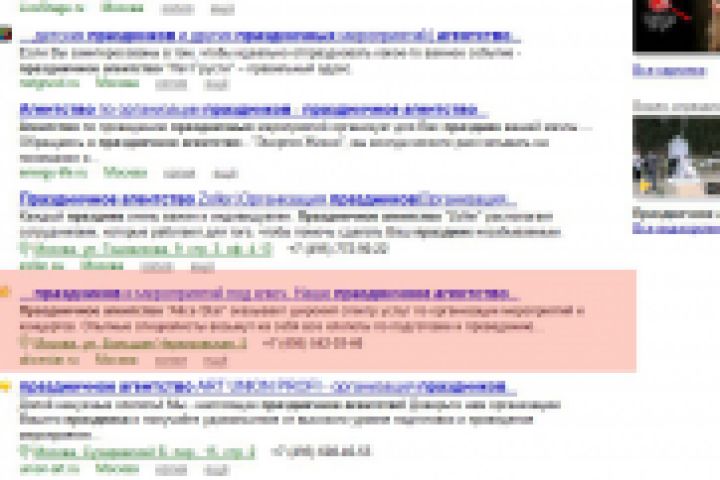 Фраза "праздничное агентство", 8 место, Яндекс