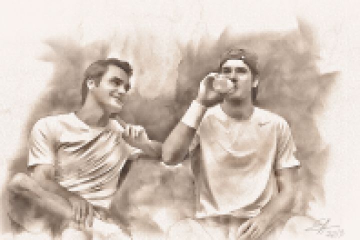 Роджер Федерер и Томми Хаас на перерыве.