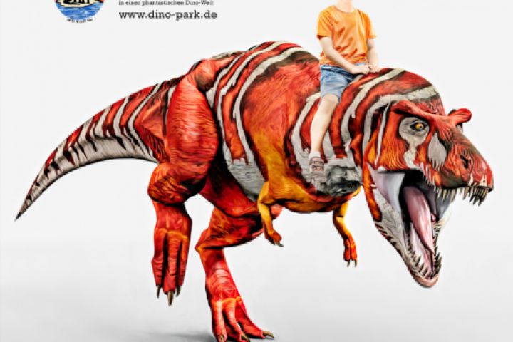 Мальчик на динозавре. Банер для немецкого Дино-парка.