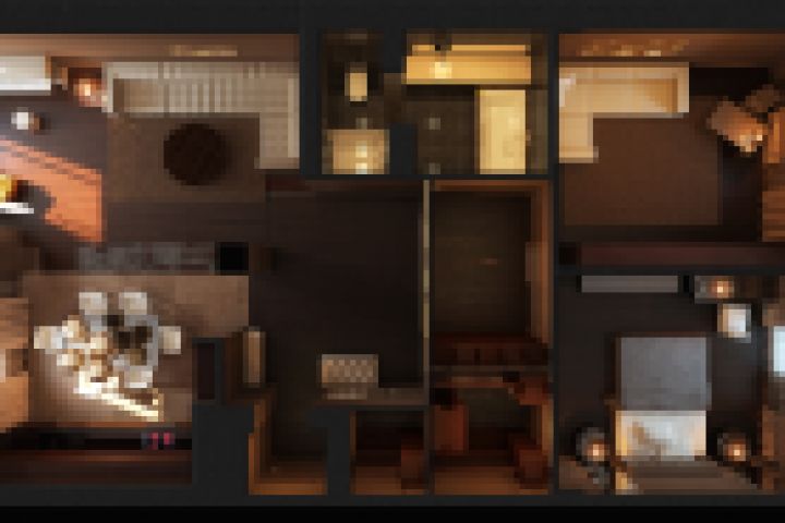 Так называемая "птичка" - рендер всей квартиры сверху с исключением потолка и потолочных светильников.