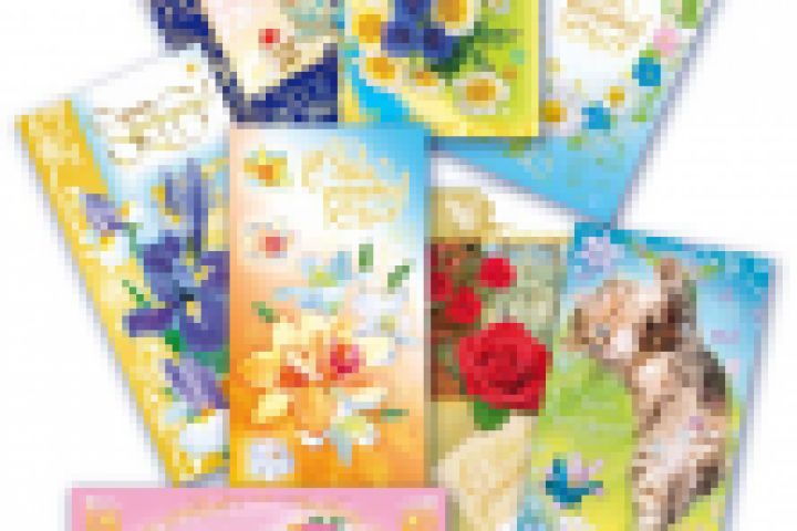 Мелованая бумага, золотая и серебряная фольга, конгрев, частичная лакировка, глитерный лак.